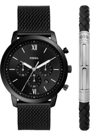 Fossil Neutra Chronograph Black Mesh Steel watch and Bracelet Box Set