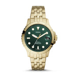 This dive-inspired 36mm FB-01 features a green sunray dial, three-hand date movement and a gold-tone stainless steel bracelet.