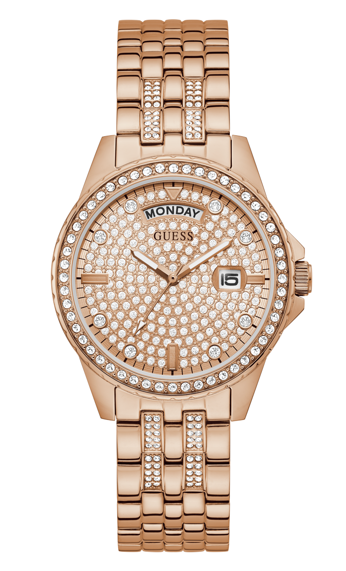 You'll never dull your sparkle with all this glitz! This style boasts crystals on both the case and lugs of the bracelet with a fully glitz powder dial.