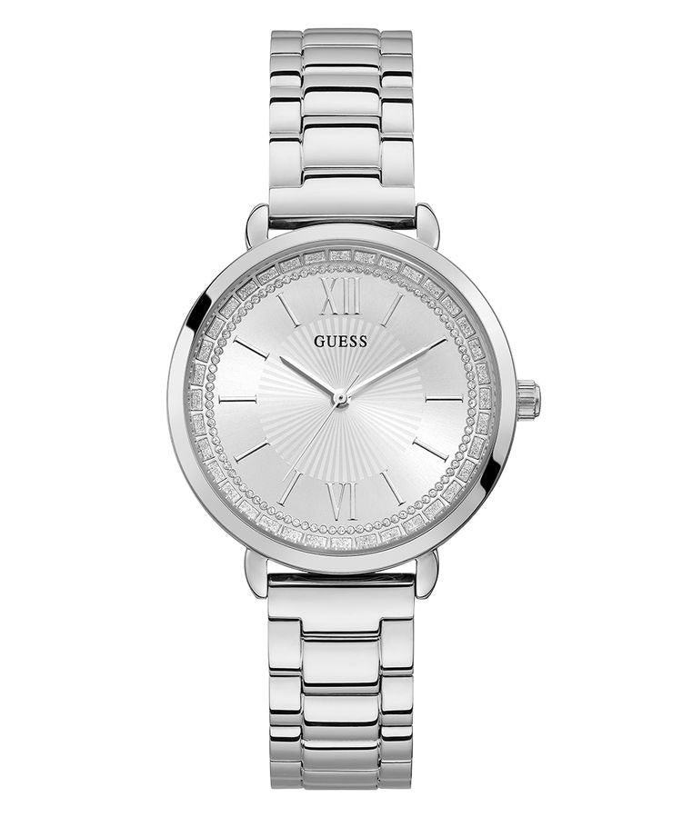 A sleek, simple watch is the perfect everyday look. This analog timepiece takes it up a notch with a row of sparkling crystals for a touch of glam.