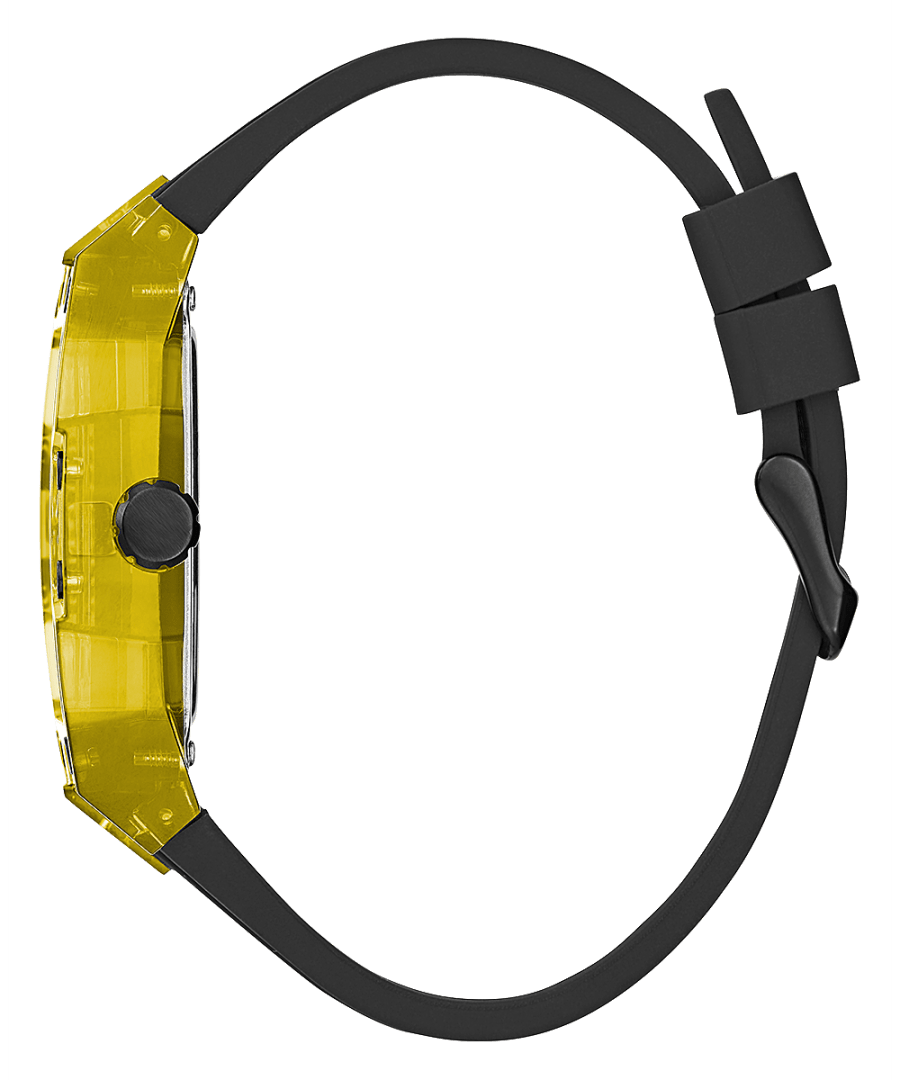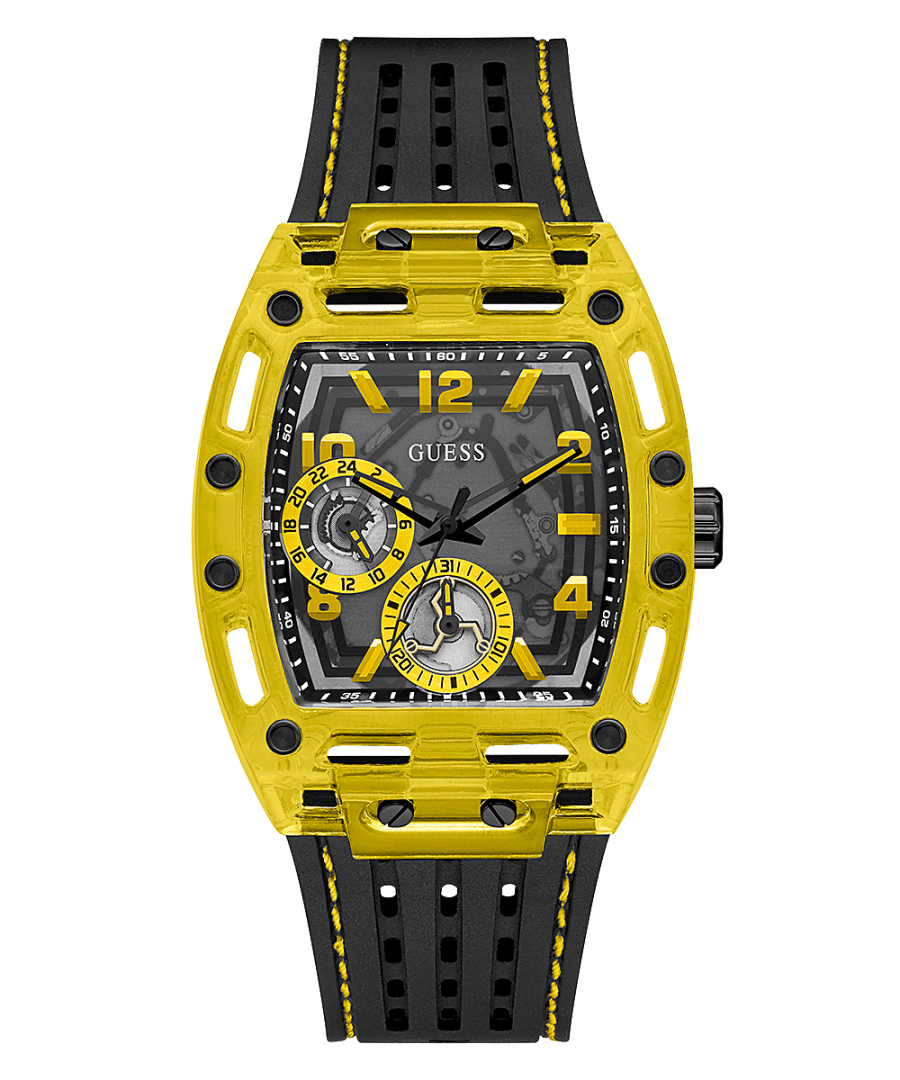 Skeleton dial details keep this phoenix on the rise. This style features a polycarbonate cut-thru barrel shaped case with black screw details and a cut-thru multi-function dial paired with a silicone strap with contrast stitching.