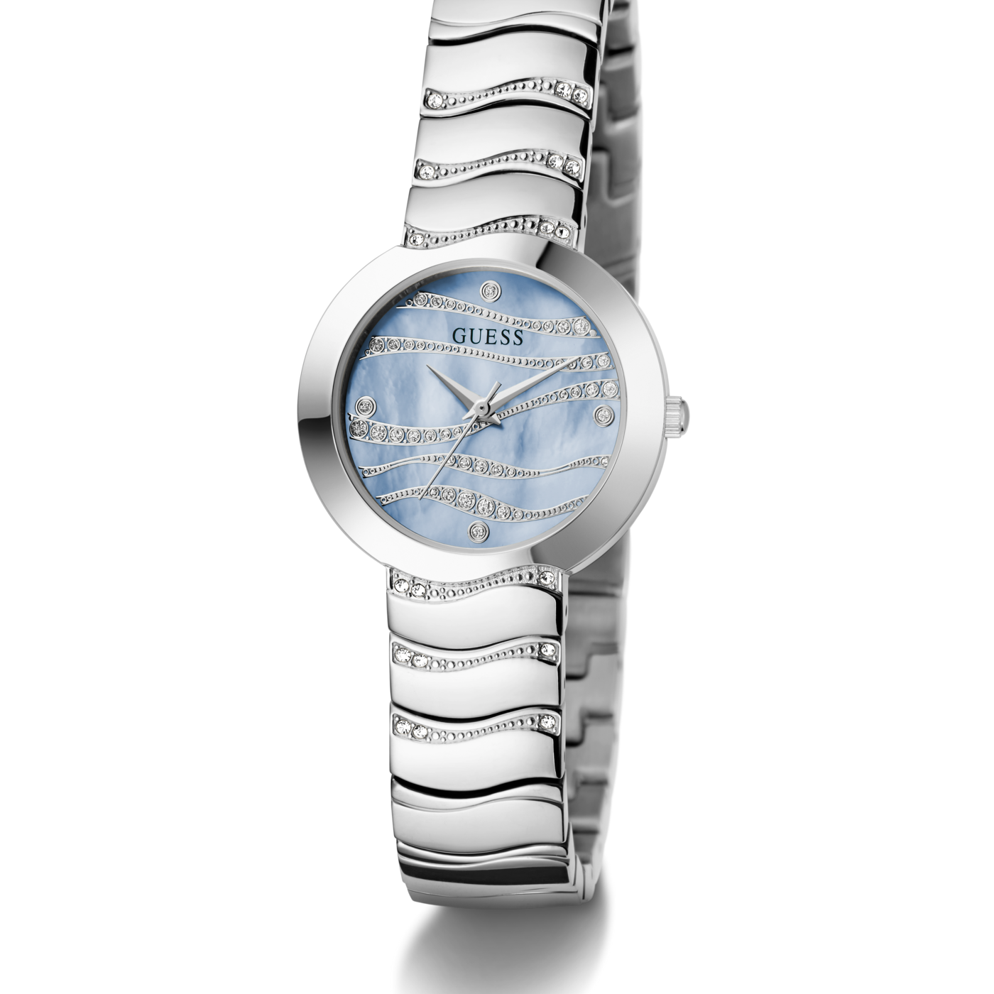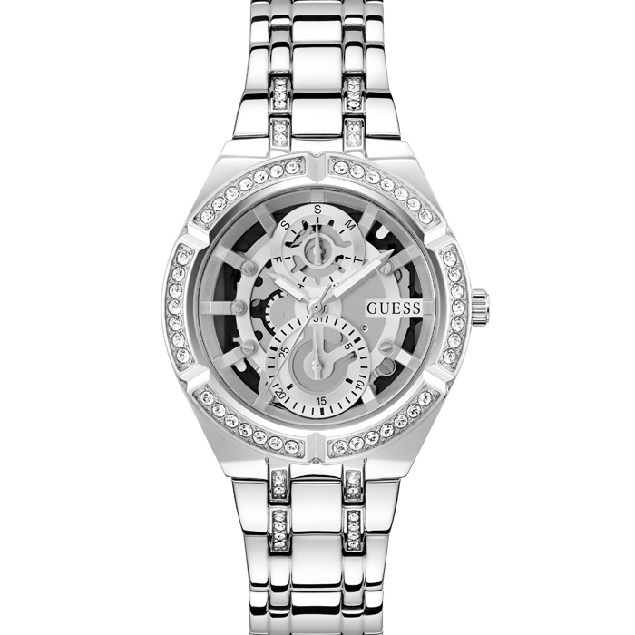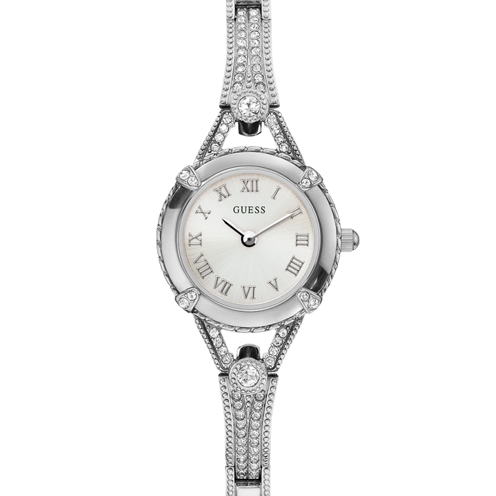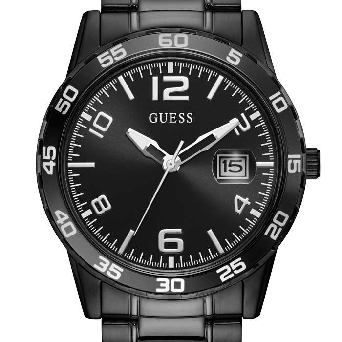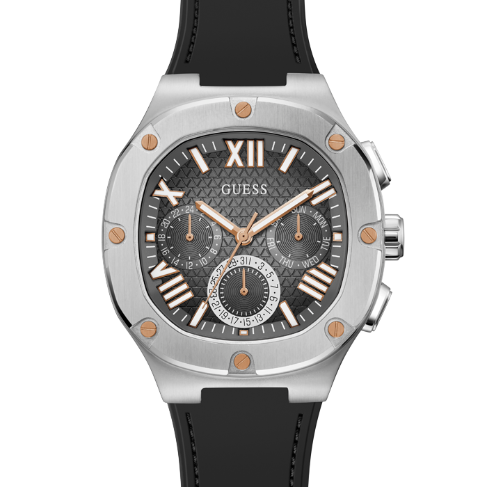 Guess Headline Silicone Strap Silver Tone Men's Watch