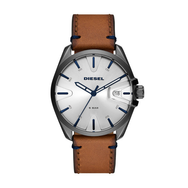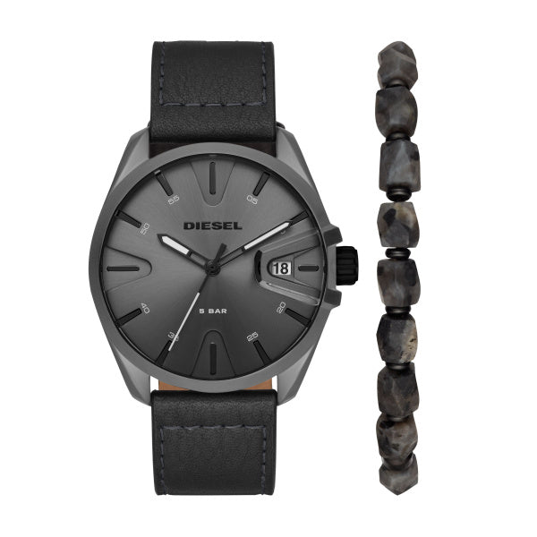Diesel MS9 Three-Hand Black Leather Watch and Bracelet Set