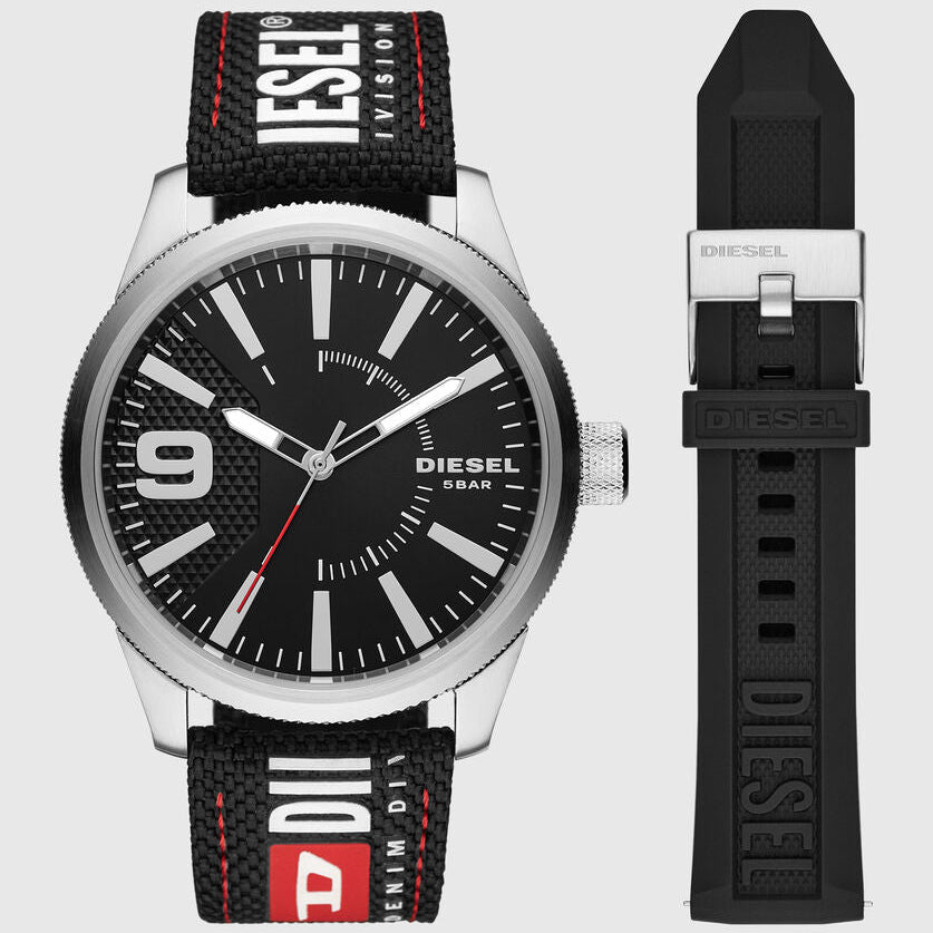Diesel Rasp NSBB Three-Hand Black Nylon Watch Set