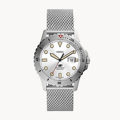 Blue Three-Hand Date Stainless Steel Mesh Watch