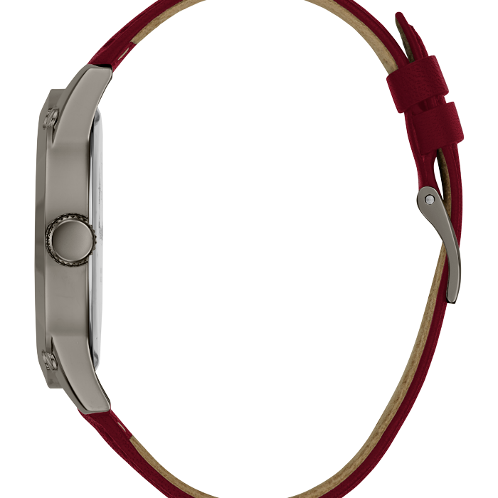 Dark Silver-Tone and Burgundy Leather Analog Watch GW0628G4