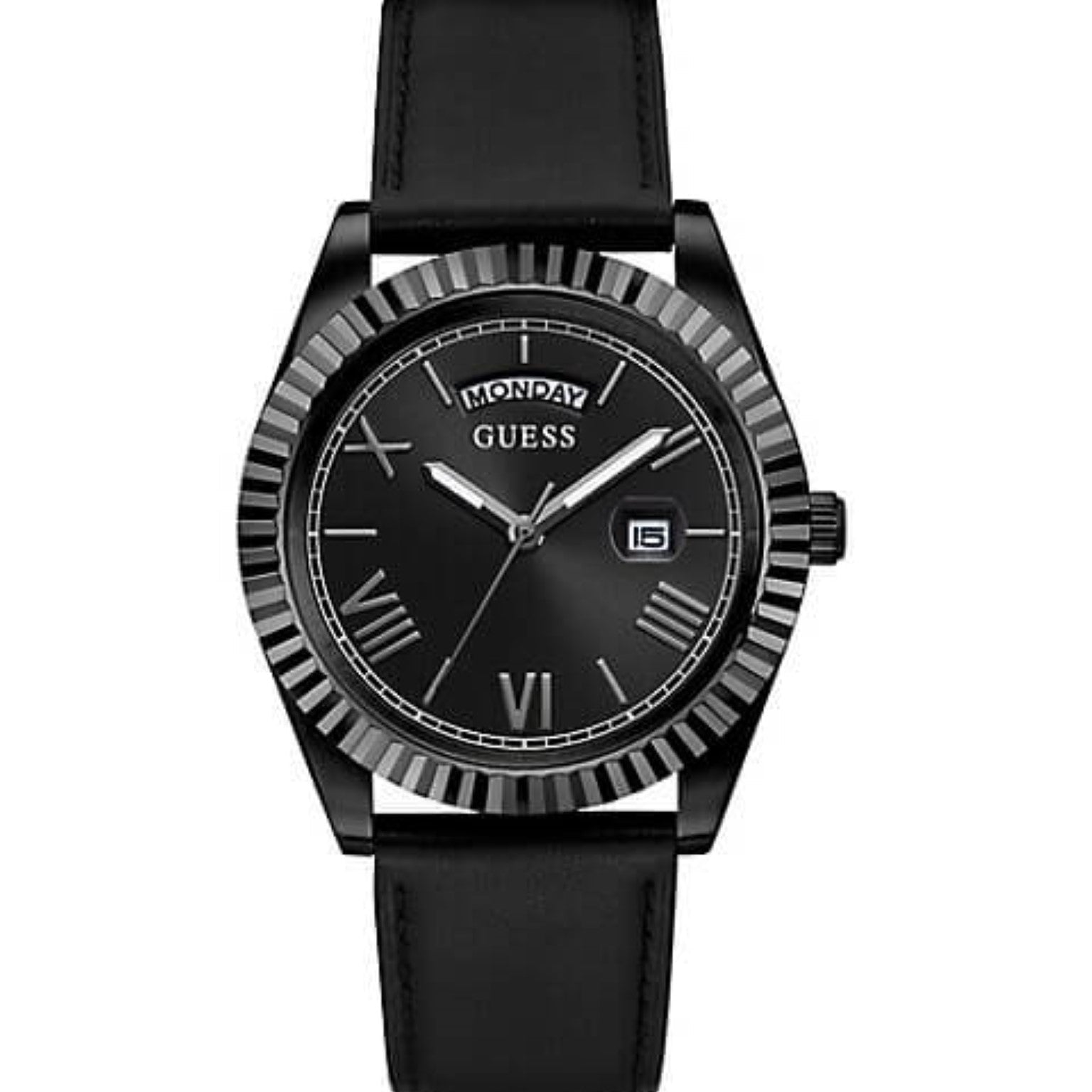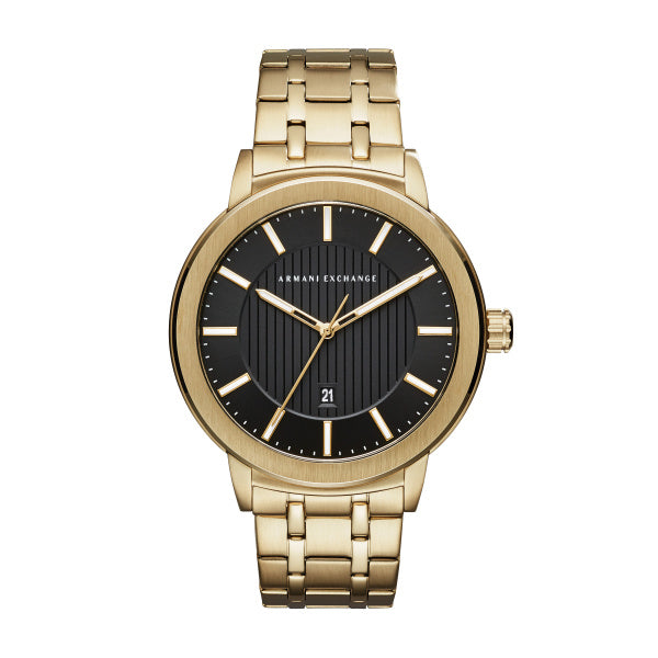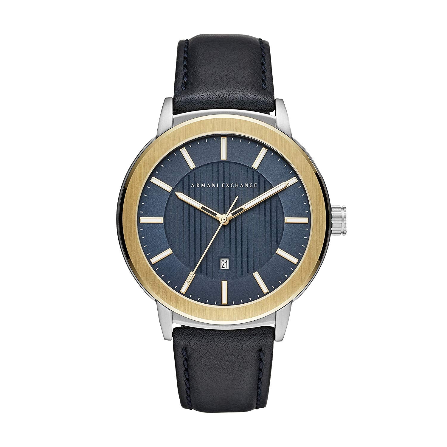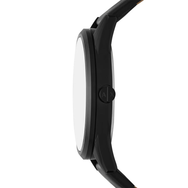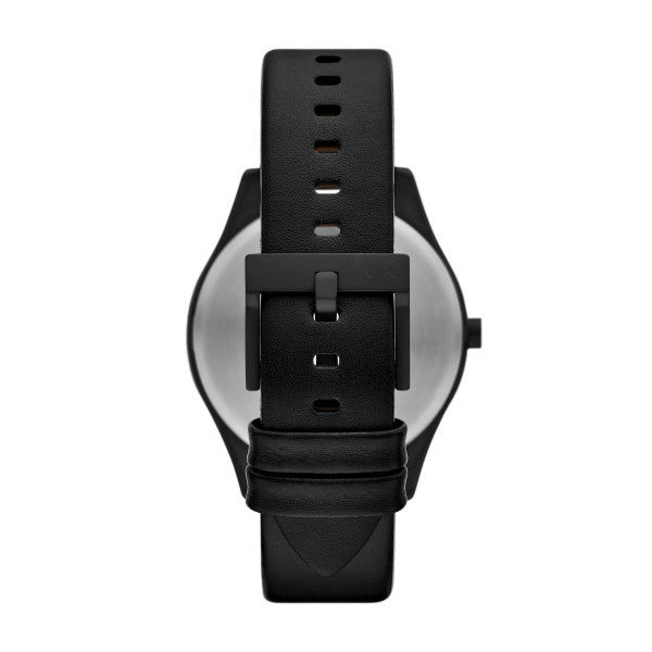 Armani Exchange Three-Hand Black Leather Watch & Steel Bracelet Set