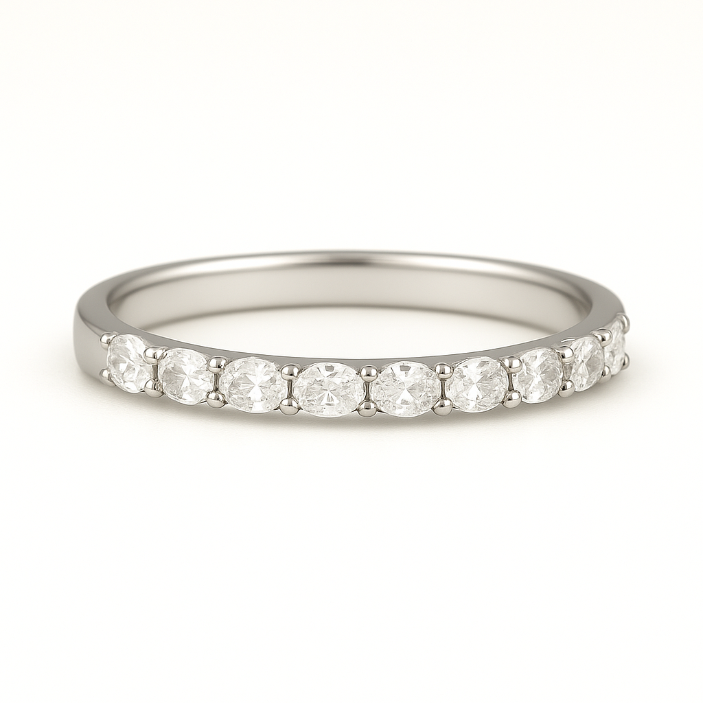 T.W. .48ct Oval Half Eternity 14k White Gold Band
