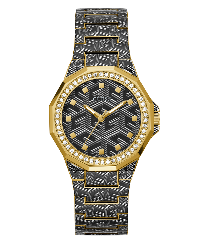 This stunning timepiece features a digitally printed G cube pattern on both it's bracelet as well as throughout the dial and is complimented by the stone details on it's unique bezel.