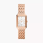 This 23mm Raquel features a white satin dial, three-hand date movement and rose gold-tone stainless steel bracelet.
