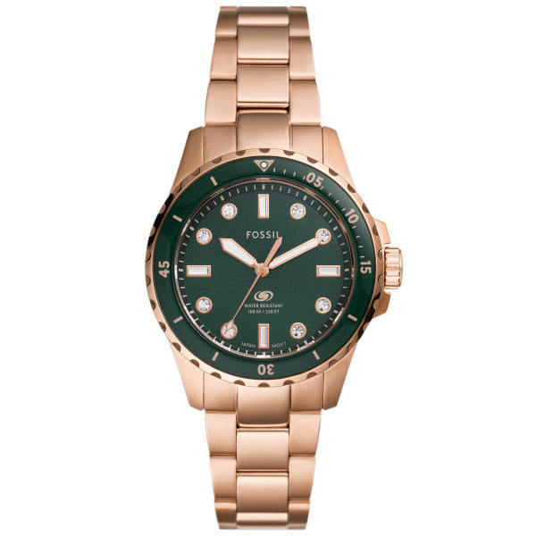 Fossil Women's Fossil Blue Dive Three-Hand Rose Gold-Tone Stainless Steel Watch ES5371
