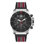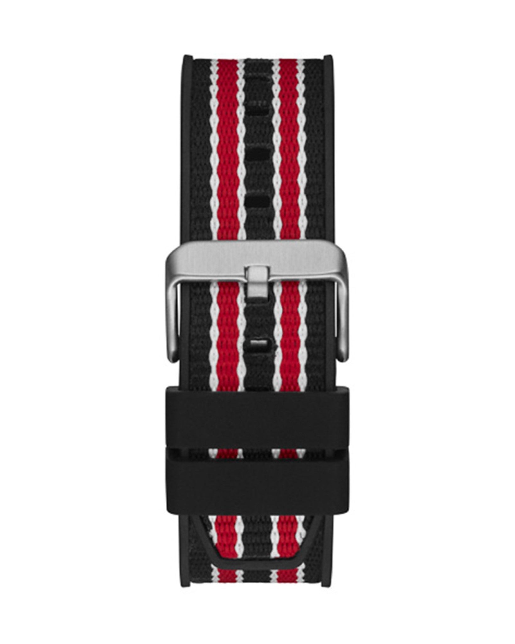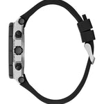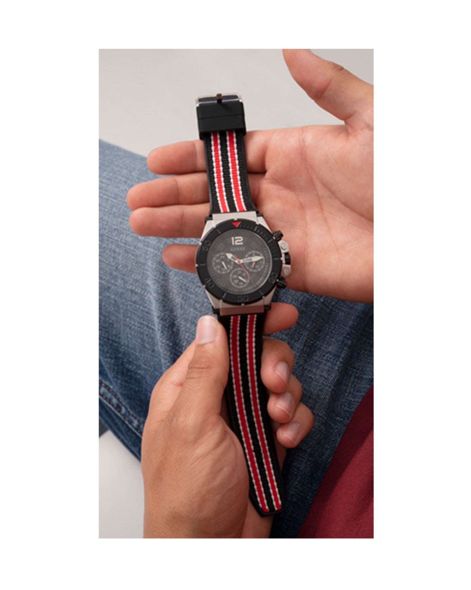 A dynamic sport look with its chrono-look multi-function paired with our signature FLEX strap that has a layer of nylon on smooth silicone. **This style features a nylon top ring that is 45% bio-based and recyclable and silicone strap with 100% recycled nylon top layer**