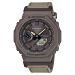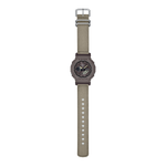 The bands are colored with dyes from FOOD TEXTILE, a project to reuse food that would otherwise be discarded to create natural dyes. Soft, earthy colors are brought to life with dyes made with over 90% natural ingredients. The dark brown hue of the GA-B2100CT-1A5 band is achieved with a dye extracted from coffee, while the khaki grey color of the GA-B2100CT-5A band comes from a dye extracted from echinacea.