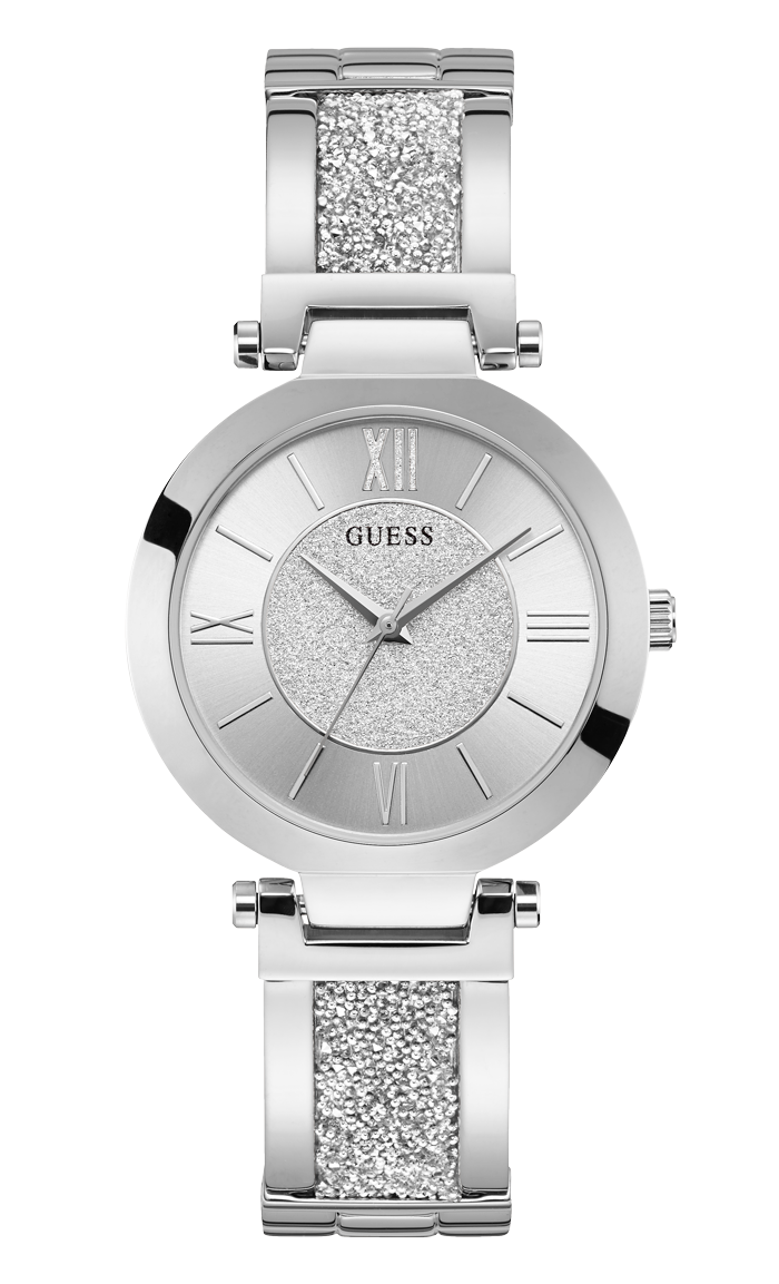 A glam bangle-style watch is the perfect finishing touch to any outfit. This silver-tone option features a clean dial and a bracelet embellished with crystals from Swarovski for a two-tone look.