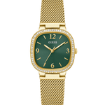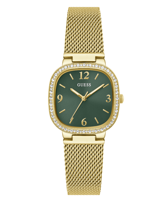 Bring the look of luxury with this elegant timepiece that features a NEW rounded square case surrounded by crystals & a self-adjustable mesh bracelet.