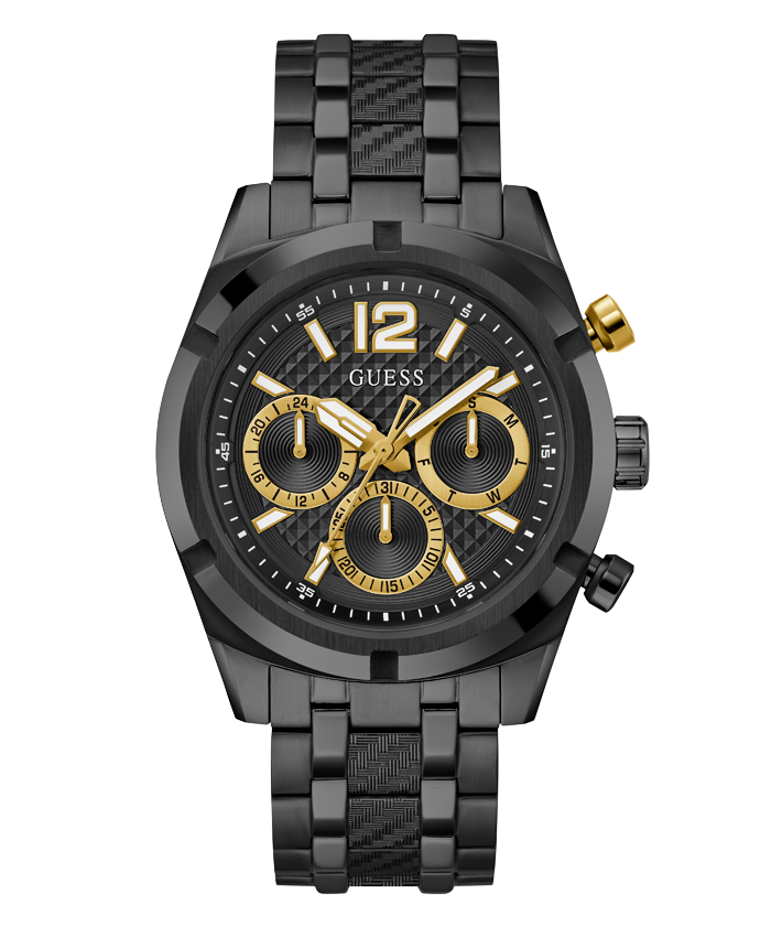• Gold-tone day, date and 24-hour international time multifunctional subdials